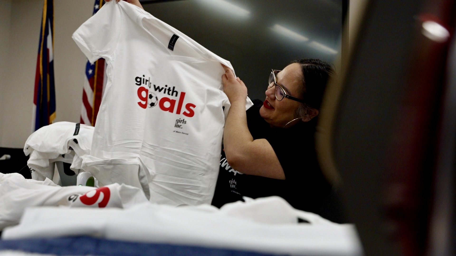 Kayla Garcia, president and CEO of Girls Inc. of Metro Denver, explained the nonprofit supports girls with after school programming providing leadership and mentorship opportunities along with outreach programs and summer camps. Just days before the home game, staff was busy making over a hundred shirts for their girls to wear and show off their support for the new professional women's team.