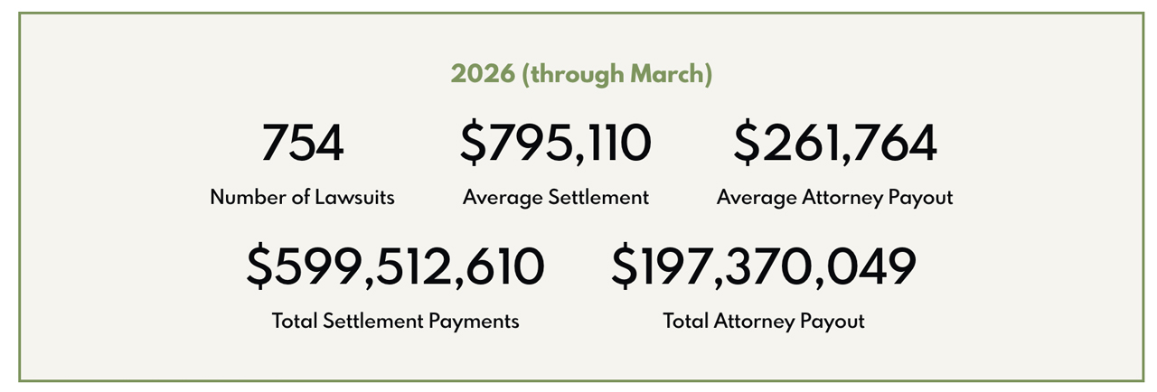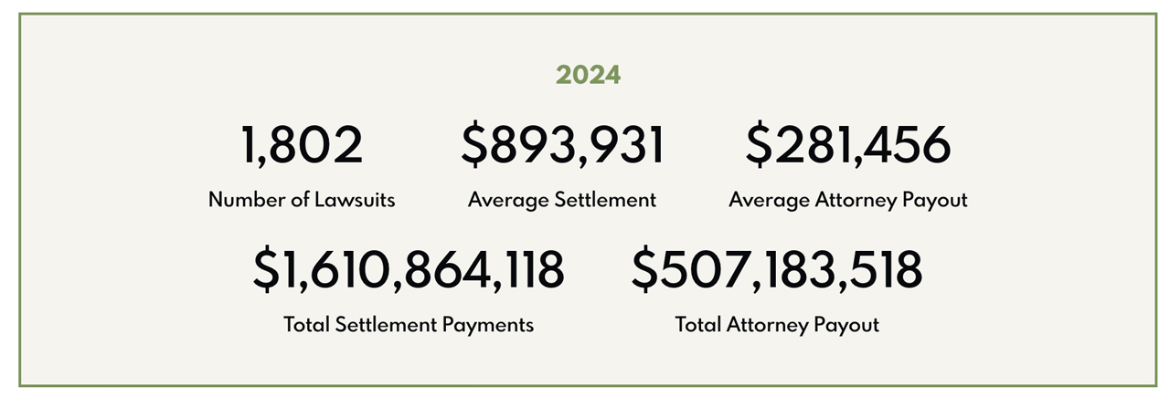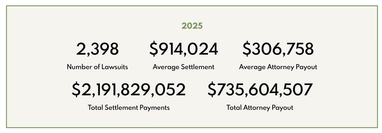In 2024, the 1,806 lawsuits brought about $1.6 billion in payments, with $508.9 million going to attorneys. The next year, after lawmakers approved what was supposed to be “comprehensive reform,” that amount grew to $2.2 billion across 2,420 lawsuits, with $740 million going to attorneys.