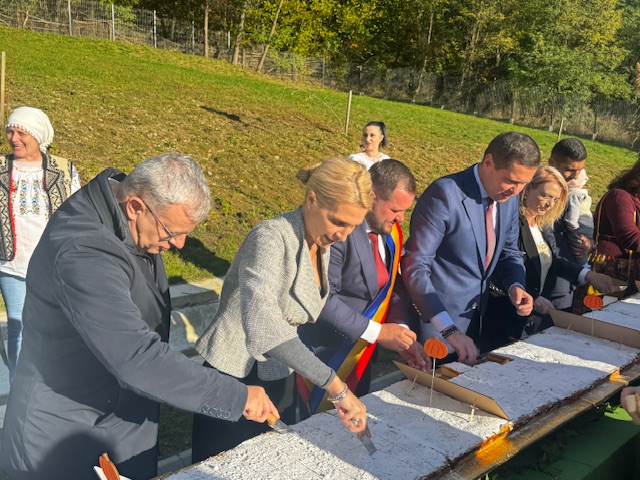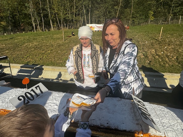 Evenimentul a fost plin de culoare și voie bună: tineri în costume tradiționale, meșteri iscusiți, artizani talentați și produse locale deosebite. Momentul special al zilei a fost tăierea unei plăcinte de dovleac impresionante, de 23 de metri!