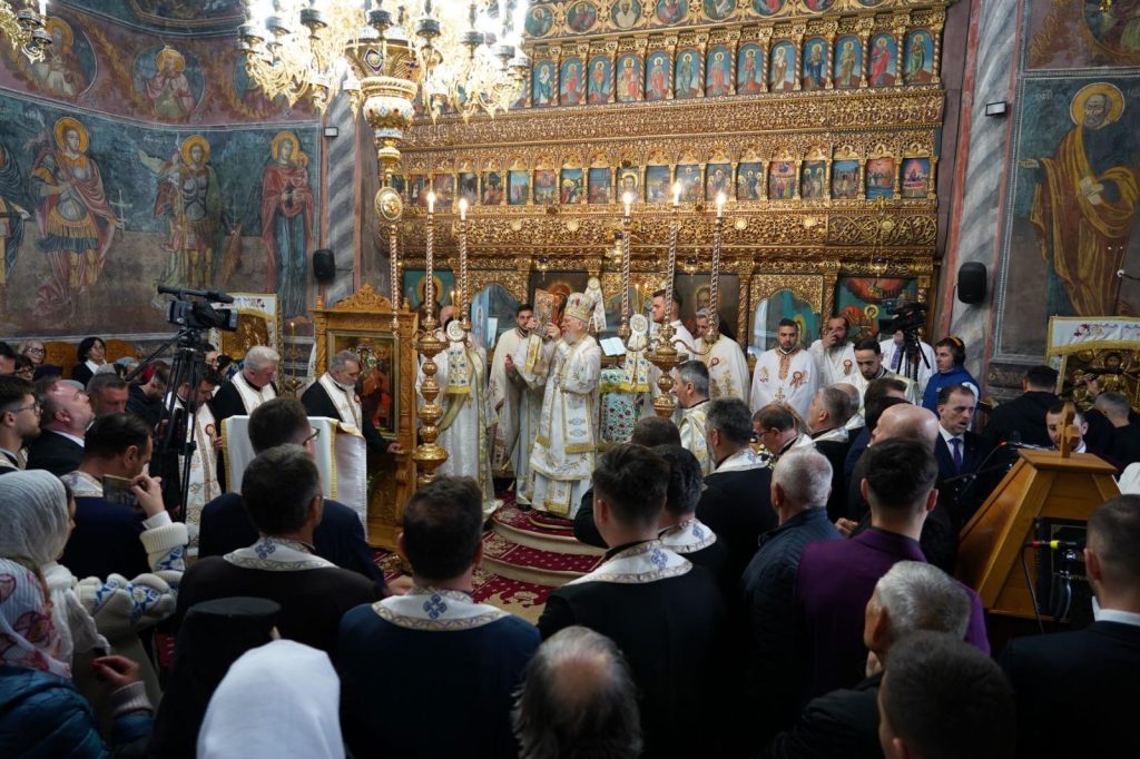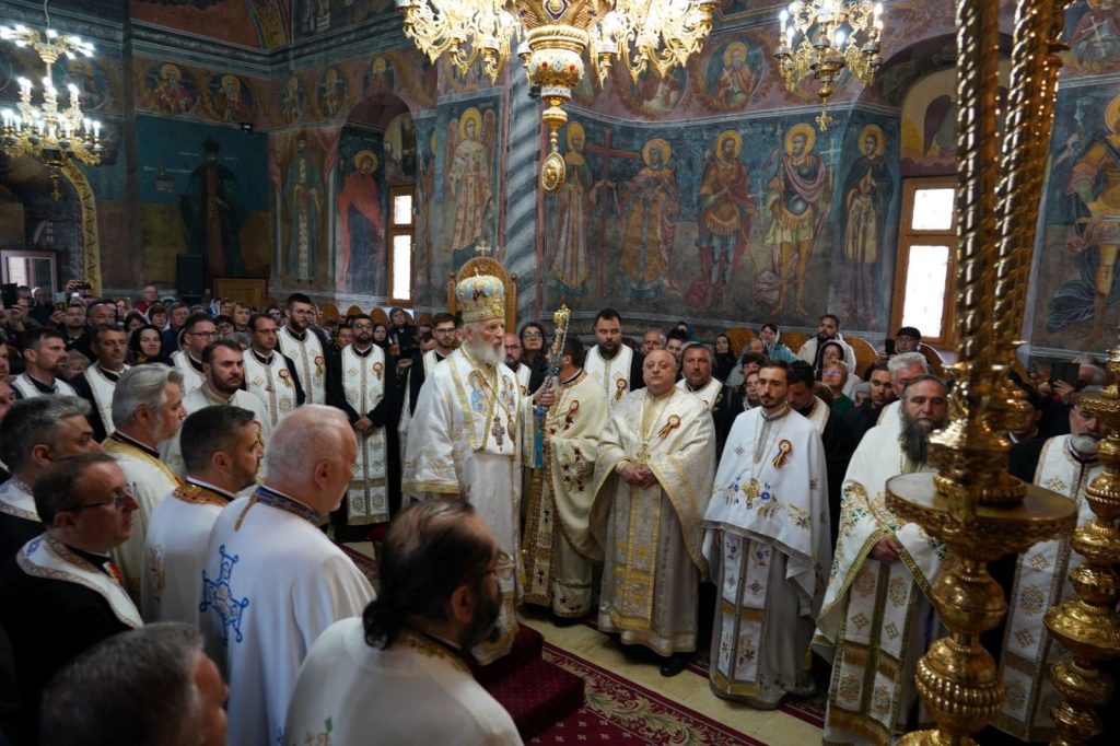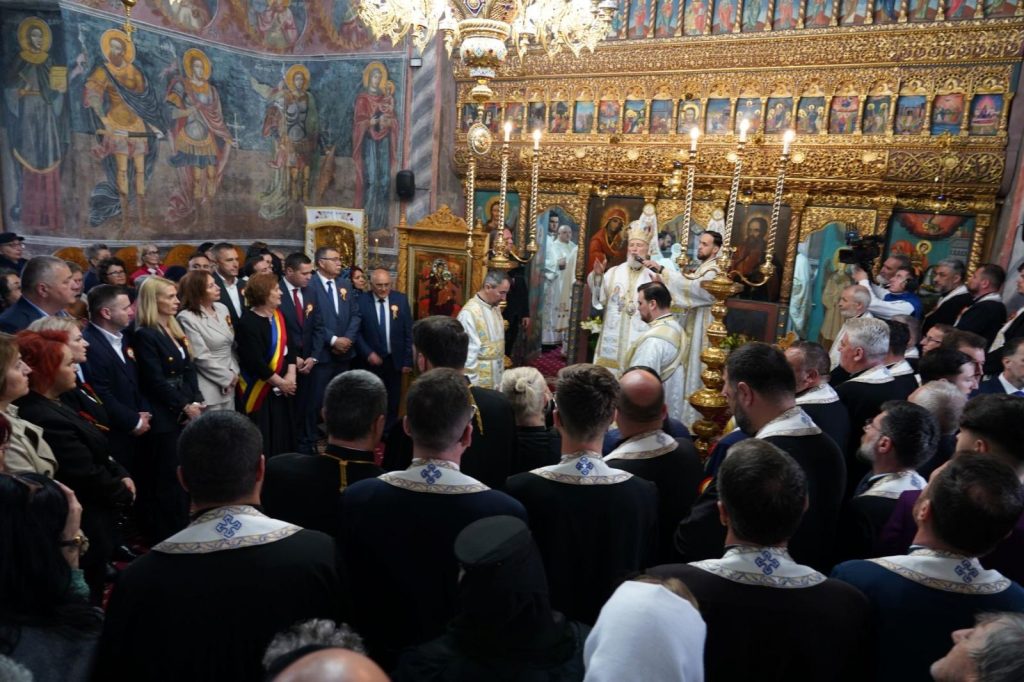 Sfânta Liturghie a fost oficiată în biserica mănăstirii de Înaltpreasfințitul Părinte Arhiepiscop și Mitropolit Nifon, înconjurat de un sobor de preoți și diaconi, din care au făcut parte Părintele Vicar Eparhial, Părinți Consilieri de la Centrul Eparhial și Părintele Protopop al Protoieriei Târgoviște Sud.