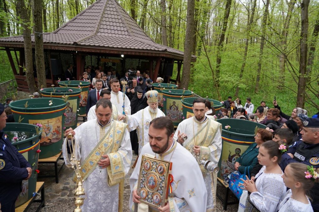 Conform tradiției îndelung împământenite, s-a mers apoi în procesiune către pădurea din apropierea mănăstirii, la cunoscutul loc „Fântâna de leac”, unde Înaltul Ierarh a săvârșit slujba de sfințire a apei și a binecuvântat pe cei prezenți.